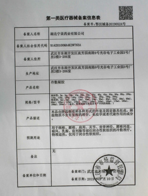 | 江西省+動態(tài)第49批 | 冷敷凝膠 | 鄂漢械備20190524號 | 200g|瓶 | 238.0000 |