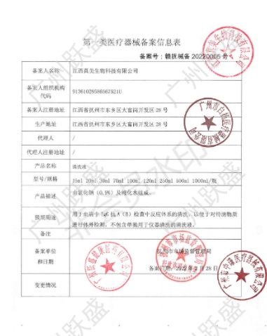 遼沈械備20180039號(hào)/沈陽醫(yī)陸生物科技有限公司清洗液