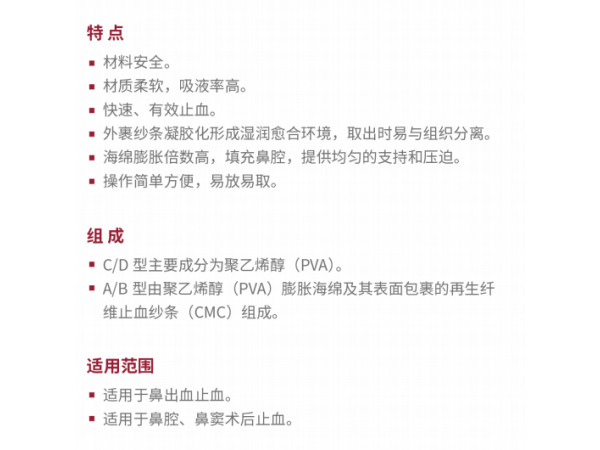 適用于鼻出血、鼻腔、鼻竇術(shù)后止血。