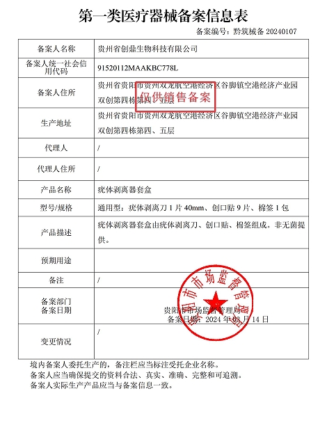 黔筑械備20240107號/貴州省創(chuàng)鼎生物科技有限公司疣體剝離器套盒