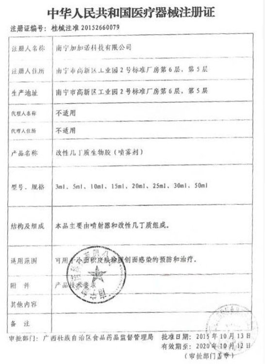 改性幾丁質(zhì)生物膠(噴霧劑)