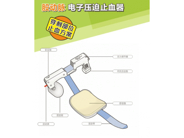 由主體、電子調(diào)壓系統(tǒng)、固定帶、硅膠壓迫墊(無菌提供)、舒壓板組成。