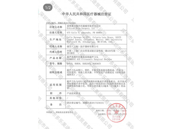 | 江西省+廣東聯(lián)盟超聲刀集采 | 超聲高頻外科集成系統(tǒng)超聲刀頭HAR36CN | 國械注進20173016331 | HAR36CN | 2499.0000 |