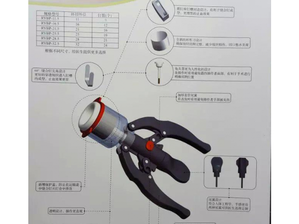 一次性包皮切割吻合器主要由鐘形龜頭座、釘倉套(尼龍)、保險(xiǎn)塊(ABS)、手柄(尼龍)、外殼(ABS)、抵釘座(12Cr18Ni9)、釘倉(ABS)、調(diào)節(jié)旋鈕(ABS)、環(huán)形刀(12Cr18Ni9)、膠圈和吻合釘(00Cr18Ni14Mo3)組成。經(jīng)縫合后的縫合口應(yīng)能承受不小于3.6Kpa的壓力。產(chǎn)品根據(jù)抵釘座內(nèi)徑可分為13)18)22)25)30、34六種規(guī)格。產(chǎn)品應(yīng)無菌。