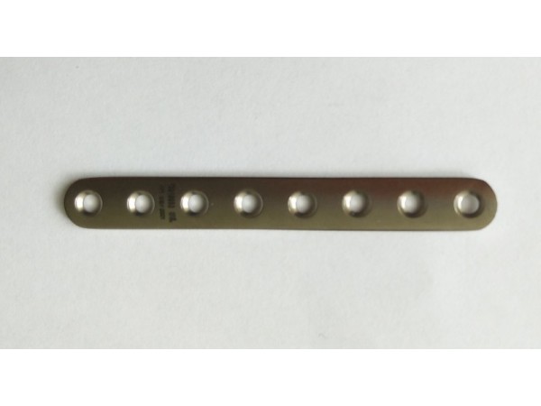 該產(chǎn)品為非鎖定型直型金屬接骨板,由符合GB/T 13810標(biāo)準(zhǔn)要求的TA3純鈦材料制造,產(chǎn)品表面無(wú)著色,非滅菌包裝。