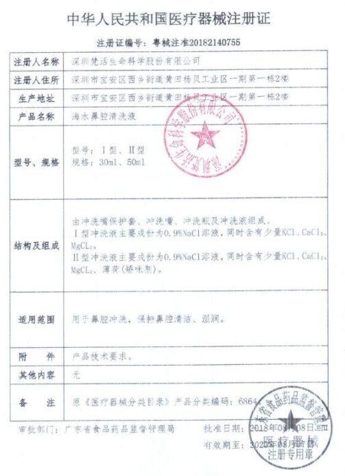 吉械注準(zhǔn)20222140678/吉林普澤生物醫(yī)藥有限公司 有效期至:2027-08-28海水鼻腔清洗液