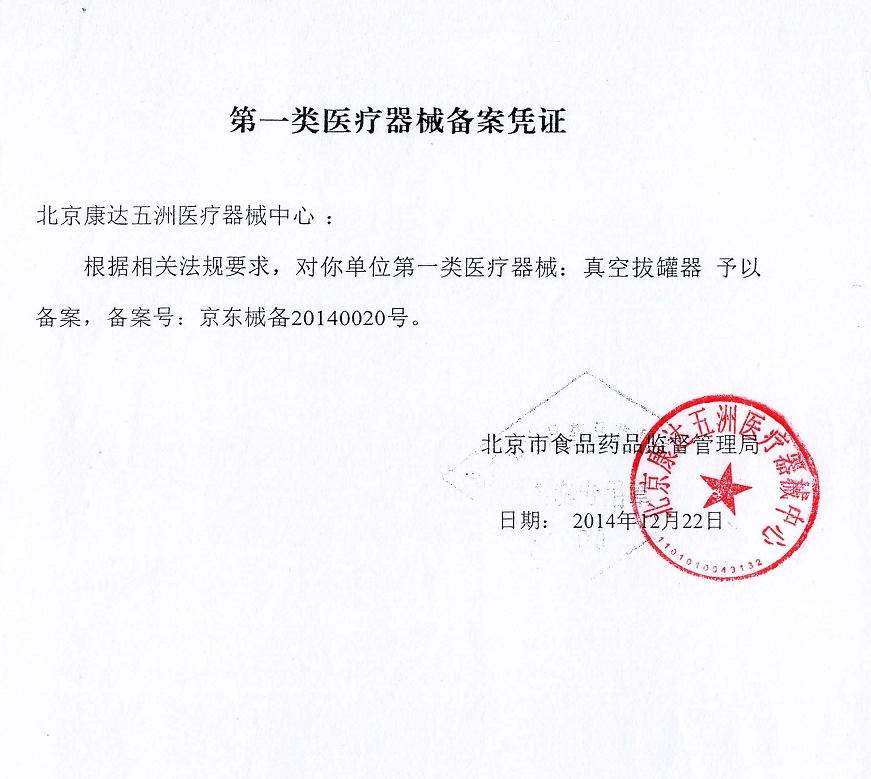 京藥監(jiān)械(準(zhǔn))字2011第1270994號(hào)/康而福國(guó)際健康事業(yè)(北京)有限公司 有效期至:2015-12-27真空拔罐器