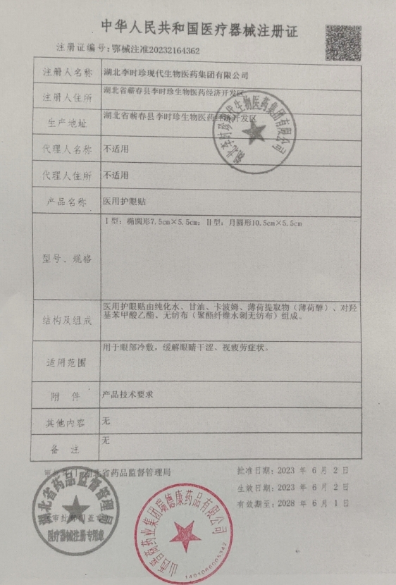津械注準(zhǔn)20232140338/藍(lán)洋藥業(yè)(天津)集團(tuán)有限公司 有效期至:2028-11-19醫(yī)用護(hù)眼貼