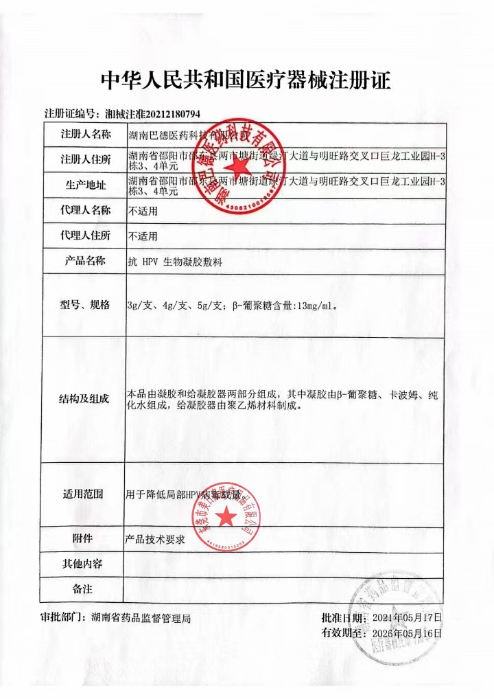 | 四川省2023年耗材掛網(wǎng)(第二批及第三批) | 抗HPV生物凝膠敷料 | 湘械注準20212180794 | 3g/支 | 188 |