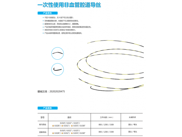 湘械注準(zhǔn)20182020005/湖南依微迪醫(yī)療器械有限公司 有效期至:2028-01-17一次性使用非血管腔道導(dǎo)絲