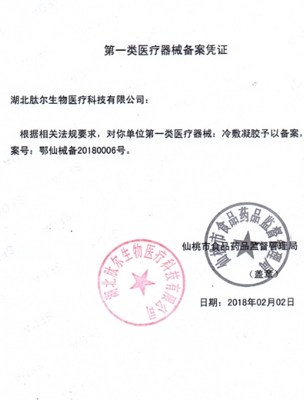鄂天械備20200001號/湖北極儷生物醫(yī)藥科技有限公司冷敷凝膠