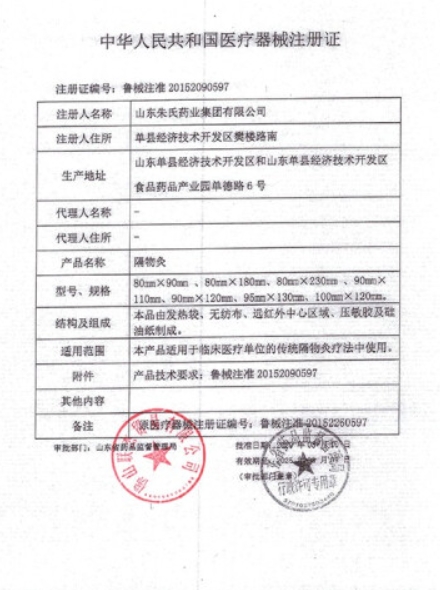 魯械注準(zhǔn)20152260273/濟(jì)南秦魯藥業(yè)科技有限公司 有效期至:2020-04-20隔物灸