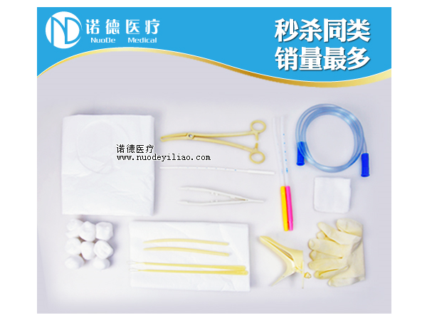 本產品由吸引管、子宮探針、擴宮棒、墊巾等組合而成。選用配置有:檢查手套、手術手套、宮頸擴張用模具、陰道擴張器、子宮頸鉗、漸進式擴宮棒、子宮刮匙、洞巾、墊巾、上環(huán)叉、取環(huán)鉤、包布、袖套、褲腿、紗布、卵圓鉗、棉球、棉簽、鑷子、負壓吸引管。經(jīng)環(huán)氧乙烷滅菌,產品無菌
