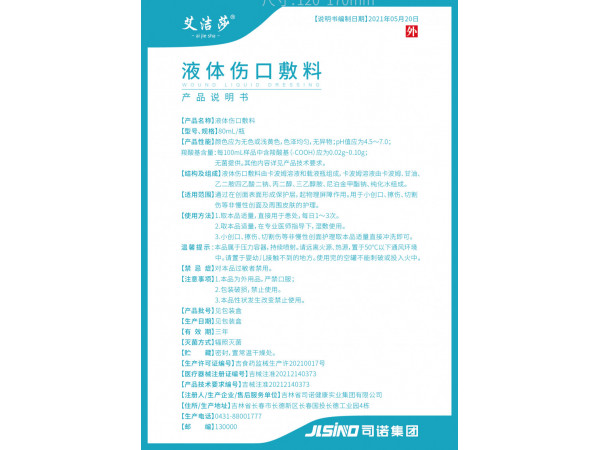 晉呂械備20210036號/山西一宜醫(yī)藥科技有限公司液體傷口敷料