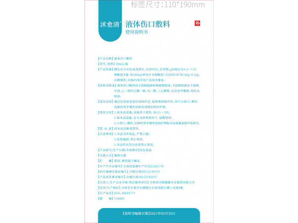 湘常械備20210080號/常德市一諾生物醫(yī)藥有限公司液體傷口敷料