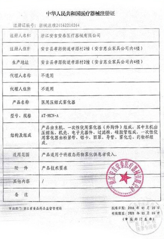 冀械注準20152210023號/冀州市佳禾醫(yī)療器械有限公司 有效期至:2020-03-23醫(yī)用壓縮式霧化器