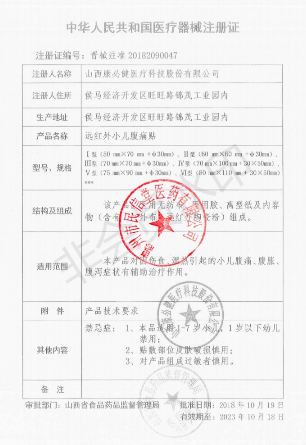 吉械注準(zhǔn)20252090483/吉林修凱健康產(chǎn)業(yè)有限公司 有效期至:2030-08-18遠(yuǎn)紅外小兒腹痛貼