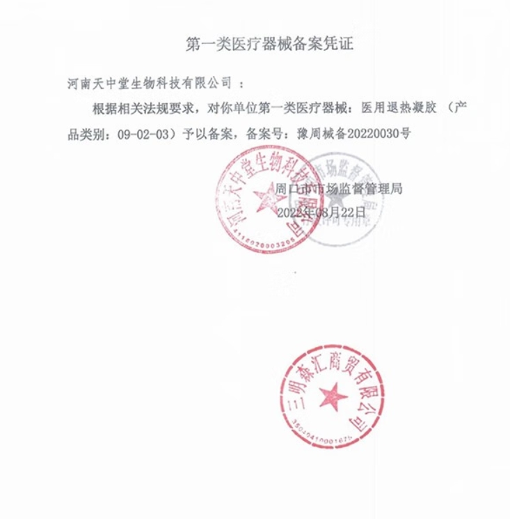 陜咸械備20190014號/陜西中美天順?biāo)帢I(yè)有限公司醫(yī)用退熱凝膠