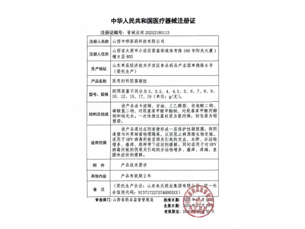 晉械注準(zhǔn)20232180021/曲沃李時(shí)珍醫(yī)藥科技有限公司 有效期至:2028-03-05醫(yī)用婦科阻菌凝膠