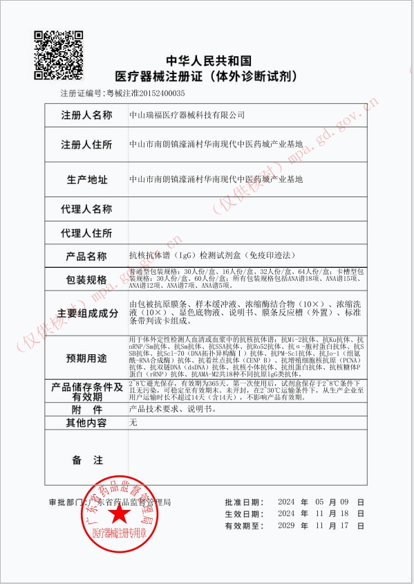普通型包裝規(guī)格:30人份/盒、16人份/盒、32人份/盒、64人份/盒;卡槽型包裝規(guī)格:30人份/盒、60人份/盒;所有包裝規(guī)格包括ANA譜18項(xiàng)、ANA譜15項(xiàng)、ANA譜12項(xiàng)、ANA譜7項(xiàng)、ANA譜5項(xiàng)。
