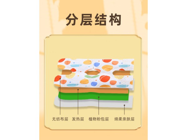 本品以發(fā)熱袋、敷膜無紡布和含有壓敏膠的無紡布及硅油紙制成。