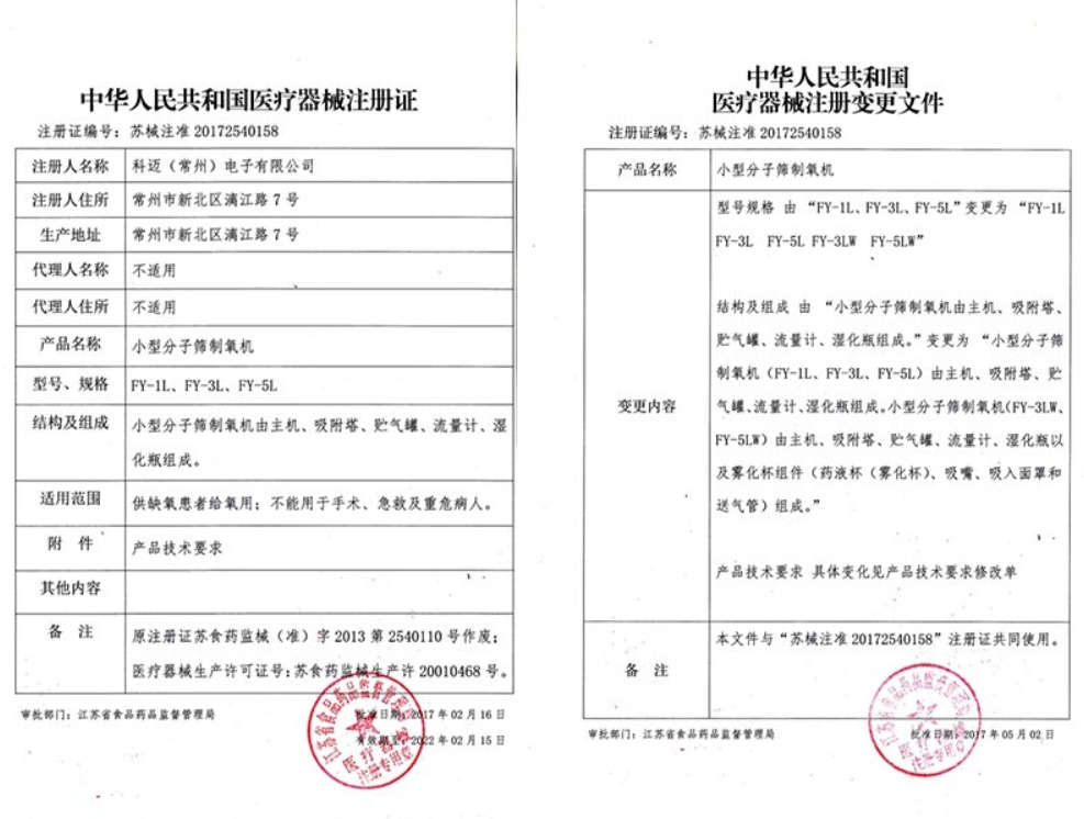 皖械注準20162540294/合肥康居人智能科技有限公司 有效期至:2021-10-25小型分子篩制氧機