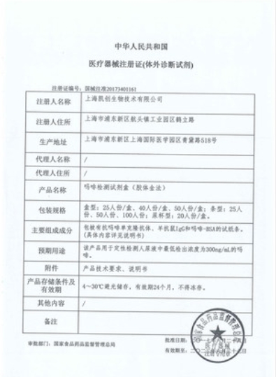 國(guó)械注準(zhǔn)20173401195/上海八通生物科技股份有限公司 有效期至:2022-06-28嗎啡檢測(cè)試劑盒(膠體金法)