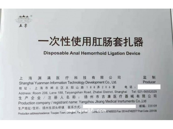 蘇械注準20182090236/無錫東峰怡和科技發(fā)展有限公司 有效期至:2023-01-21一次性使用肛腸套扎器