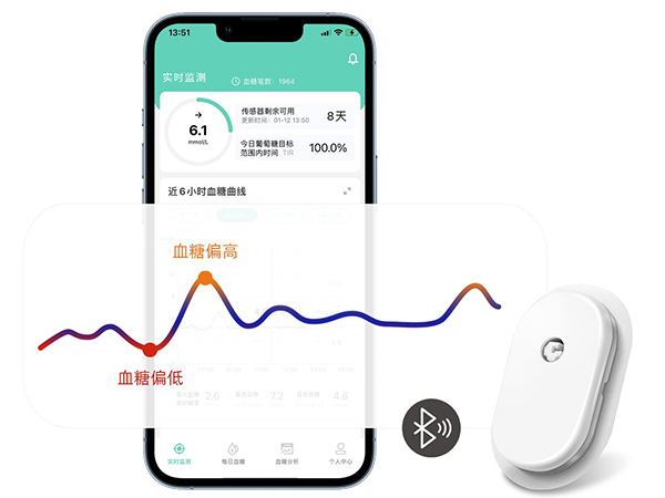 產品用于糖尿病成年患者(≥18歲)的組織間液葡萄糖水平的連續(xù)或定期監(jiān)測。產品可提供并存儲連續(xù)葡萄糖值,供用戶跟蹤葡萄糖濃度變化的趨勢。葡萄糖傳感器僅供單個用戶使用,不需要用戶進行校準,使用時間最長14天。產品測量結果不作為決定和調整糖尿病患者治療方案的依據(jù)。