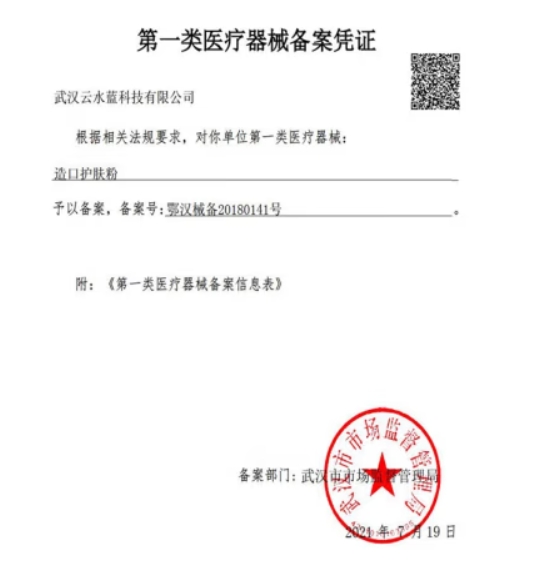 鄂漢械備20210817號/武漢同向醫(yī)療器械有限公司造口護膚粉