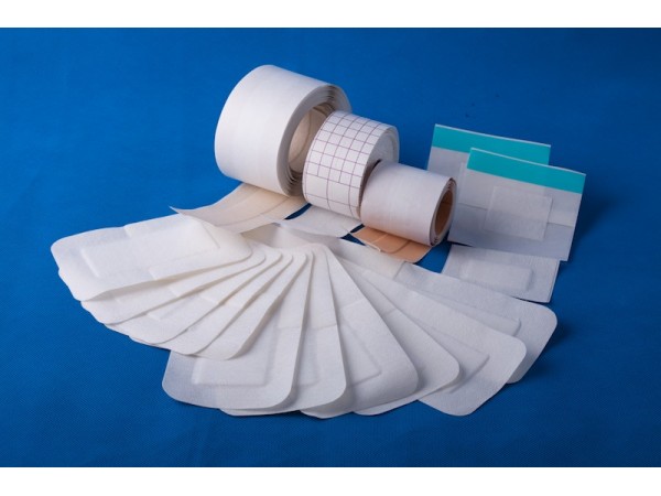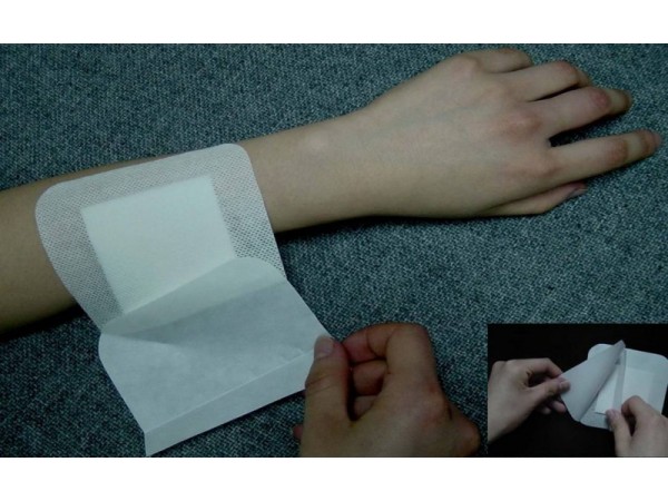 產(chǎn)品由基材(無(wú)紡布、聚乙烯膜、聚氨酯膜、彈性布、棉布),涂以醫(yī)用壓敏膠,并復(fù)合吸水墊(由無(wú)紡布及隔離網(wǎng)膜制成)和隔離紙(表面經(jīng)防粘處理的離型紙)制成。