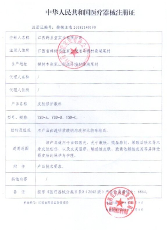 | 陜西省第四批普通耗材網(wǎng)上陽光采購 | 皮膚修護(hù)敷料 | 贛械注準(zhǔn)20182140190 | YSD-B | 52 |