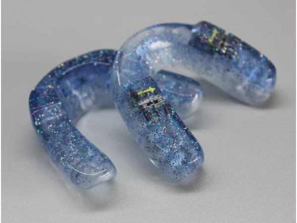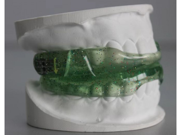 由上牙套(正畸基托聚合物、牙膠片、擴(kuò)弓螺絲組成)和下牙套(正畸基托聚合物、 牙膠片組成)兩部分組成,接觸人體時(shí)間小于30天。