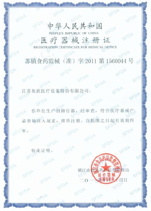 蘇鎮(zhèn)食藥監(jiān)械(準(zhǔn))字2010第1560041號/江蘇魚躍醫(yī)療設(shè)備股份有限公司 有效期至:2014-12-02助行器