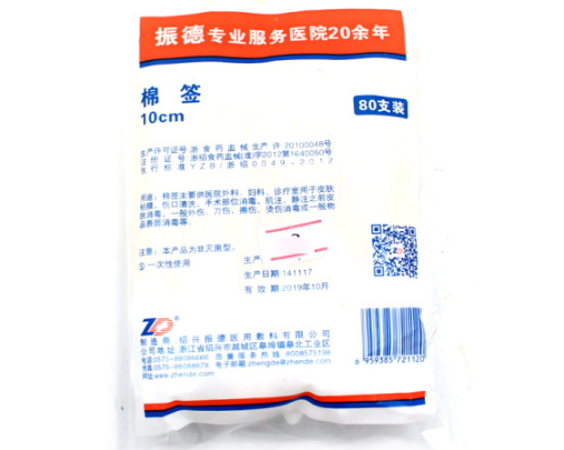 浙紹食藥監(jiān)械(準)字2011第1640033號/紹興振德醫(yī)用敷料有限公司 有效期至:2015-12-08棉簽