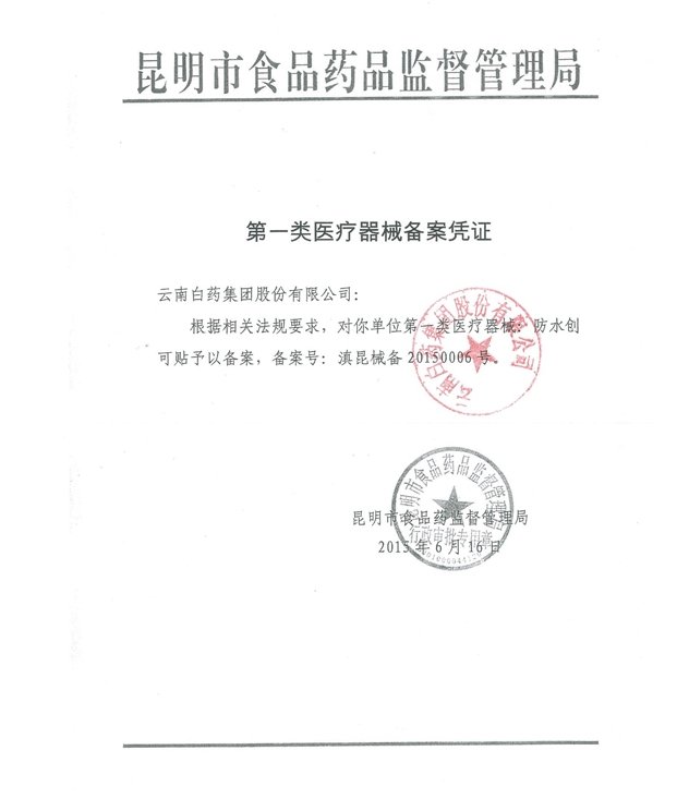 浙金械備20160035號/浙江紅雨醫(yī)藥用品有限公司防水創(chuàng)口貼