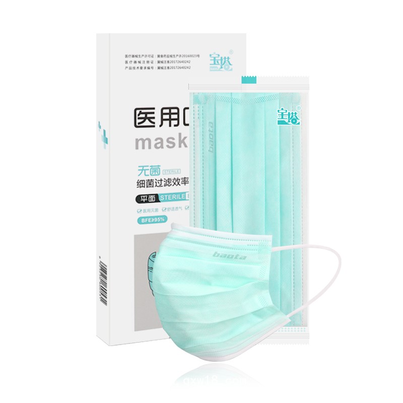 產品名:寶塔醫(yī)用口罩平面A型10片/盒三層無紡布獨立包裝無菌防塵防霾