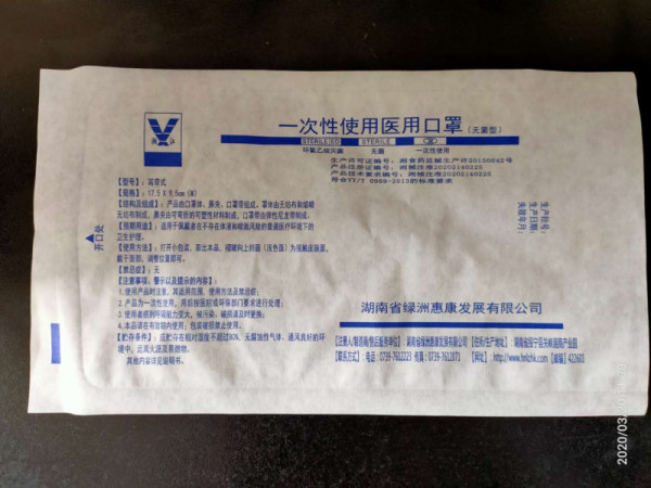 產(chǎn)品名:一次性使用醫(yī)用口罩