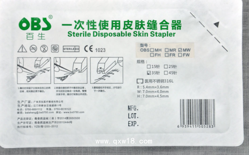產(chǎn)品名:百生皮膚縫合器OBS-MW