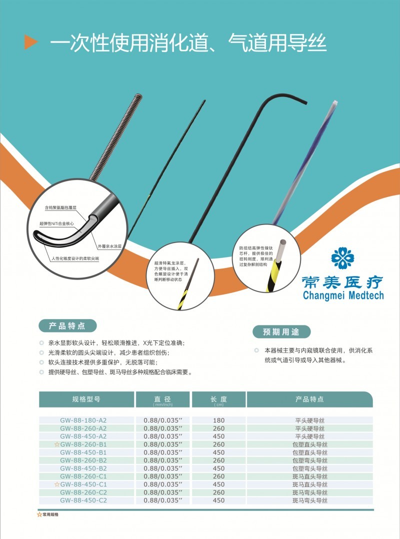 產(chǎn)品名:一次性使用消化道氣道用導(dǎo)絲