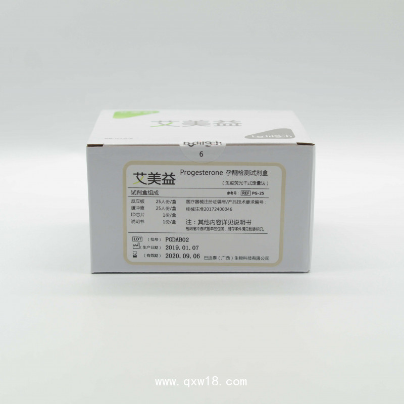 產(chǎn)品名:巴迪泰 孕酮檢測試劑盒(免疫熒光干式定量法) 25人份/盒