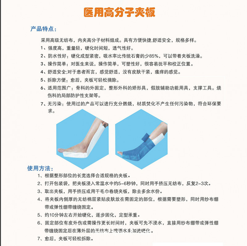 產(chǎn)品名:立峰生物醫(yī)用高分子夾板 ECO-S06