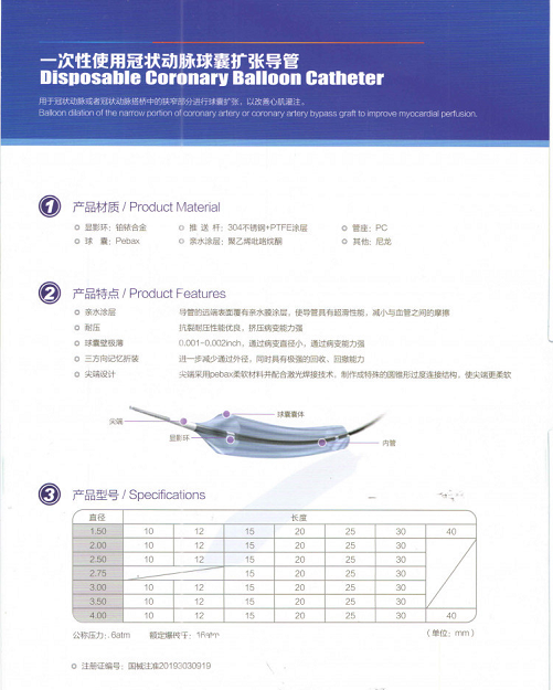 產(chǎn)品名:南京友德邦 一次性使用冠狀動(dòng)脈球囊擴(kuò)張導(dǎo)管