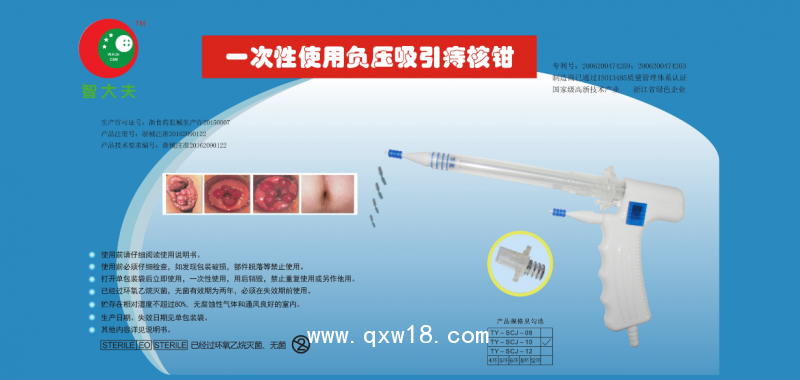 產(chǎn)品名:一次性負壓吸引痔核鉗 套扎器 痔瘡 上海眾仁