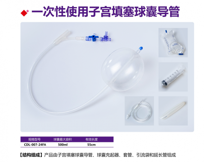 產(chǎn)品名:凱迪萊止血球囊、一次性使用子宮填塞球囊導(dǎo)管CDL-007-24FA