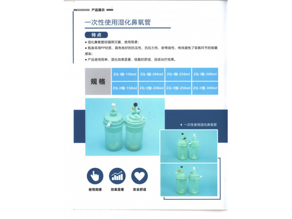 產(chǎn)品介紹一次性使用一體式濕化鼻(吸)氧管,產(chǎn)品包含濕化瓶、鼻氧管、使用記錄單;主要適用于與輸氧系統(tǒng)連接供臨床吸氧、霧化用