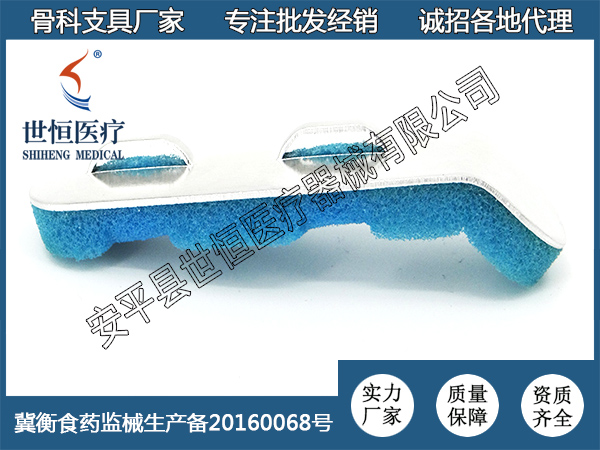 名稱:可塑型橈骨夾板顏色:白色材質(zhì):高分子泡沫和金屬鋁板尺碼:成人、兒童 ; 大中小功能:適用于肘關(guān)節(jié)骨折復(fù)位固定,可代替石