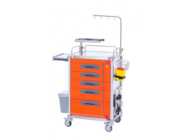 供應ABS搶救車,多功能ABS搶救車,方格牌搶救車型號:FG-A-01尺寸:783*504*995MM1.臺面采用ABS模具成型,車體輕便,容易清潔;上臺面配透明軟玻璃。2.立柱采用3MM厚度鋁合金型材,強度高,耐磨抗腐蝕,外形美觀精致;3.抽拉式ABS副工作臺設計,可以延長應用過程中的工作臺面。4.側板背板選用鋁合金板,不生銹,易清理,車體更輕便,顏色淡雅適合醫(yī)院環(huán)境。5.臺面均安裝不銹鋼圍欄,能有效阻擋推動過程中物品的滑出。安全中控鎖可以同時鎖上全部抽屜。6.五個ABS抽屜,兩個20格淺抽屜(內(nèi)部高度5CM),三個20格深抽屜(內(nèi)部高度12.5CM)。抽屜內(nèi)部有自由插片,可以隨意組合。7.抽屜選用高強度三節(jié)靜音滑軌,推拉順暢,安靜,無噪音,承載量大;8.底部四只靜音防纏繞高級靜音腳輪,雙剎車腳輪直徑Φ100mm,推行靈活承載量大。9.側面配備垃圾桶可以輕松摘離。10.有ABS推手,左側消毒液銳器桶網(wǎng)籃。11.車體背面配有心肺復蘇板,電源插座,鹽水升降架,金屬托盤。