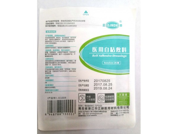 自粘敷料由水刺無紡布、醫(yī)用丙烯酸酯粘膠、不粘吸水墊和保護紙復合而成,具有不粘傷口,吸收性強,柔軟舒適,延展性好等特點,廣泛應用于各類術后傷口護理。 貼可舒"自粘性傷口敷料(無紡布敷貼)的優(yōu)點在于:采用的是國際著名品牌的低致敏溶劑膠,粘性適中且不受季節(jié)溫度變化,無殘膠且低致敏。采用的無紡布舒適柔軟,透氣性和舒適性較佳。品種規(guī)格齊全,除了各種常規(guī)規(guī)格以外,還陸續(xù)開發(fā)了眼科專用、肛腸專用、納米銀離子敷料,特殊規(guī)格尺寸可以根據用戶需求定做。產品特點: 水刺無紡布材質,柔軟舒適,延展性好; 采用進口的低致敏粘膠,粘性溫和,對皮膚刺激性小; 吸收墊:不粘傷口,吸收性強,充分吸收滲出液; 圓形邊角設計:不易翹邊,固定牢靠; 順應性好;多孔透氣建議使用范圍:留置針的固定,手術后包扎——-特別適合腫脹或移動部位。此外,亦可用于保護開放性損傷,如切傷、裂傷、擦傷及縫合傷口。常用規(guī)格主要包括:【小規(guī)格】如6cm*7cm、5cm*8cm等;【9cm系列】:9cm*10cm、9cm*15cm、9cm*20cm、9cm*25cm等【10cm系列】:10cm*10cm、10cm*15cm、10cm*20cm、10cm*25cm、10cm*30cm等【15cm系列】:15cm*20cm