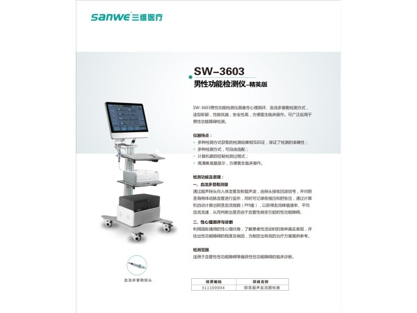 MAN+SW-3603男性功能檢測儀儀器簡介◎ 造型新穎,搭配高性能一體機,性能優(yōu)越,安全性高,人性化設(shè)計,方便醫(yī)生臨床操作◎ 血流
